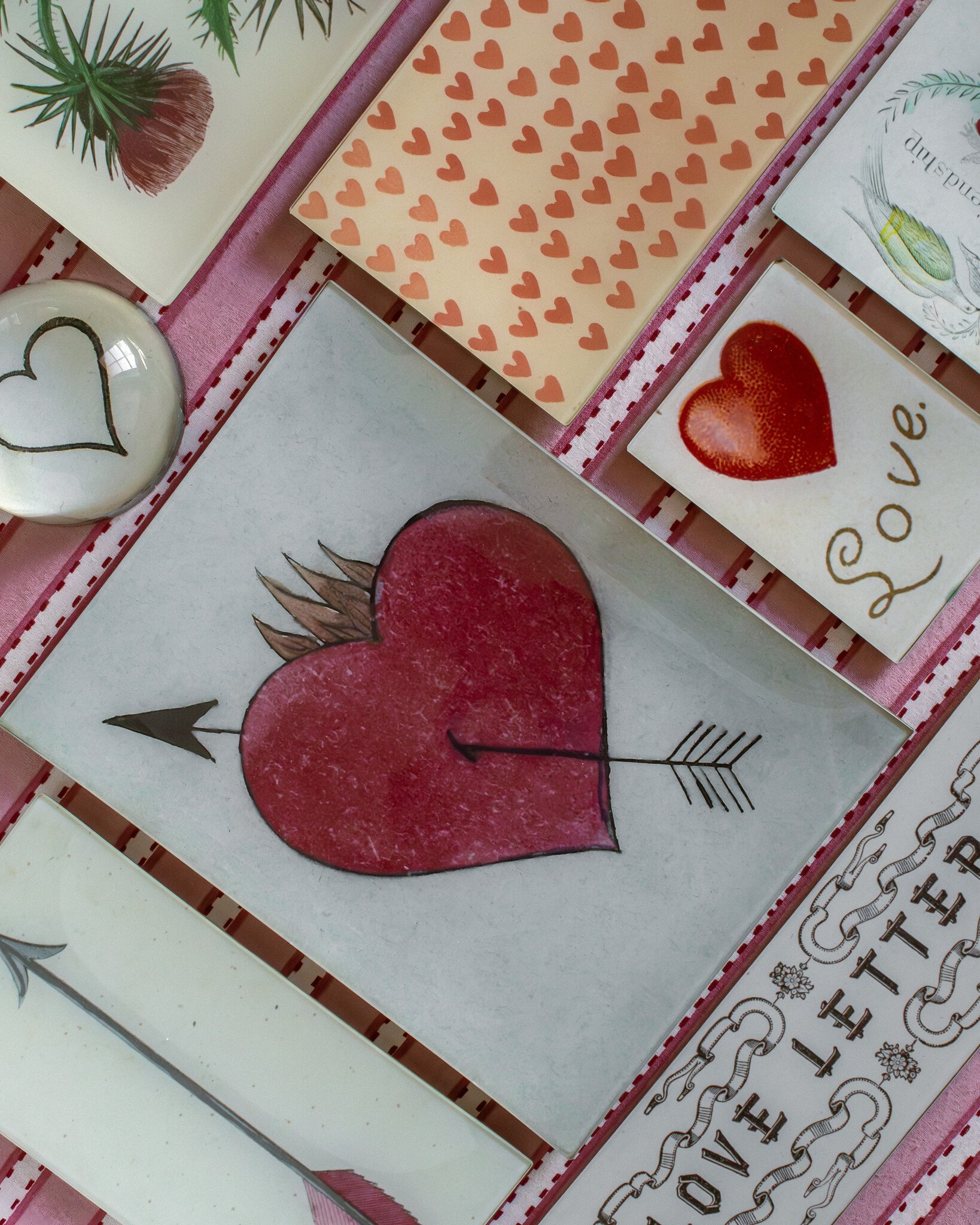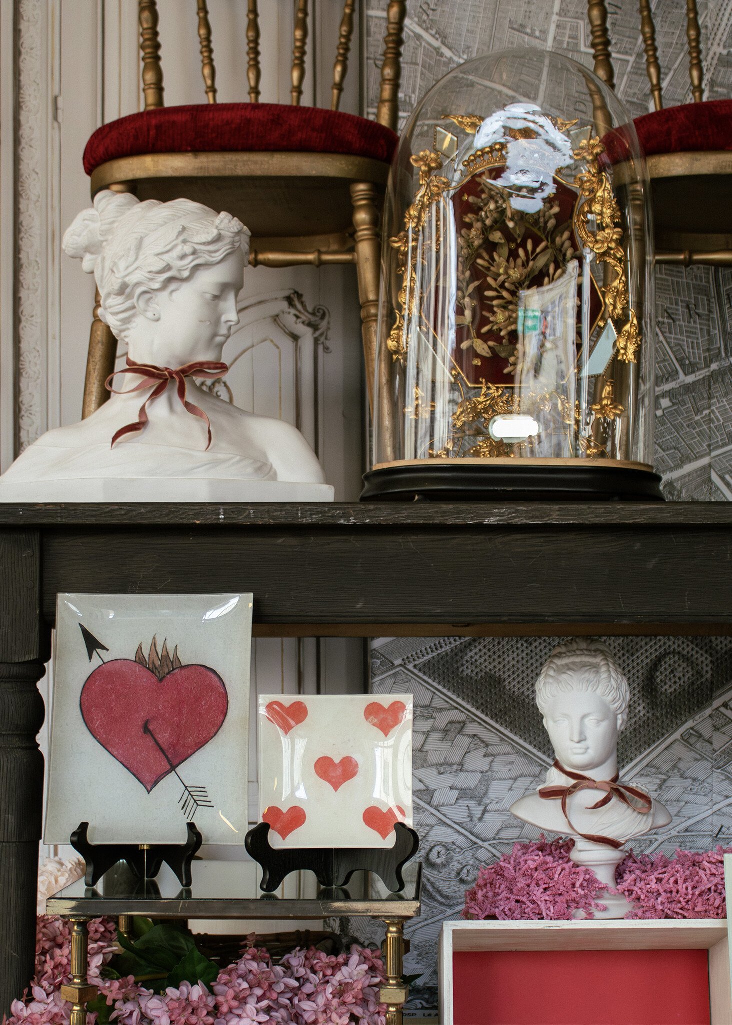 Crafted by hand with significant care, they layer cut paper images on a surface beneath glass, yielding eye-catching dimension and care thanks to the art of découpage.