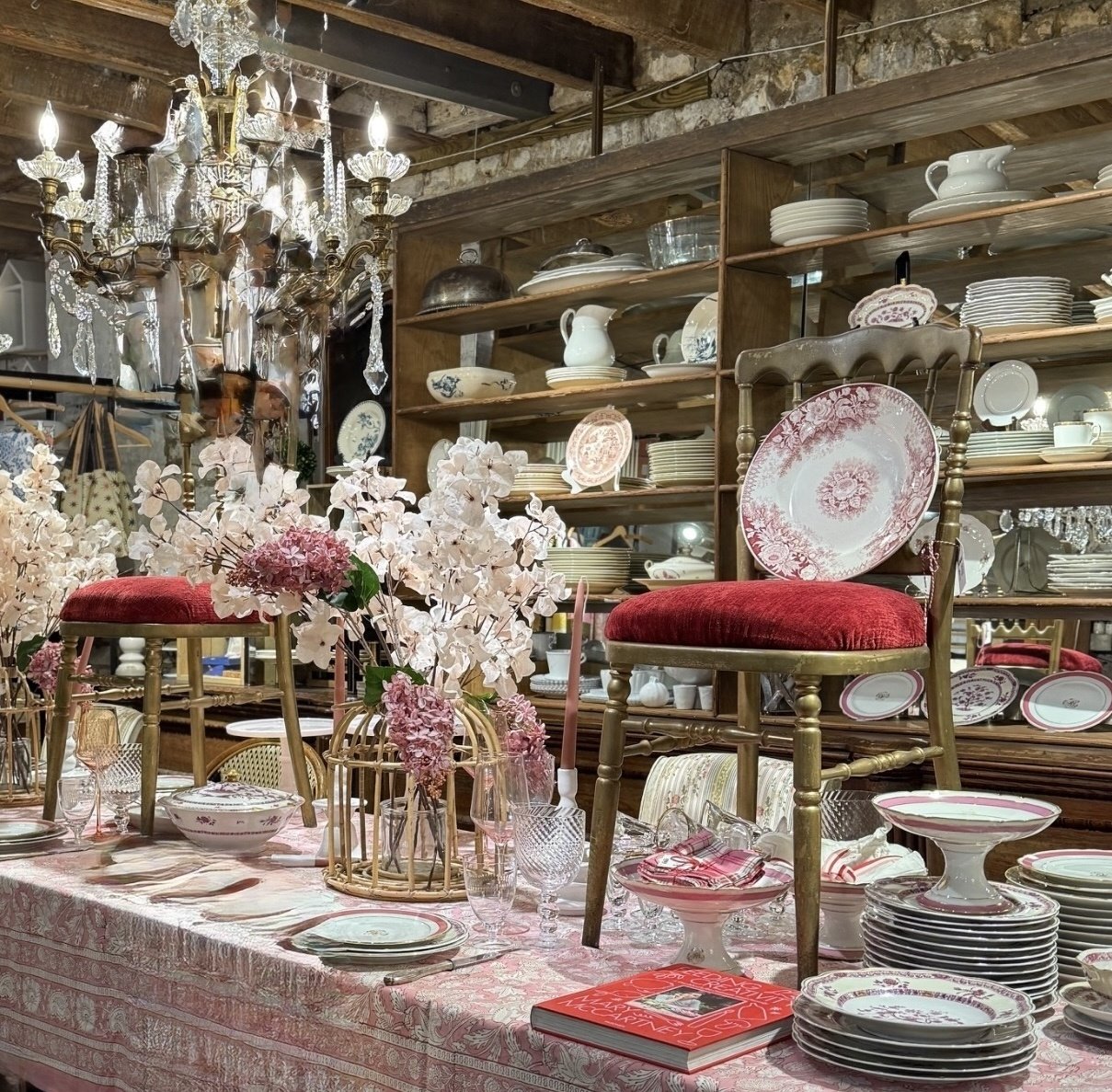 Last week as I was tearing down the old tablescape to make room for something new- the china I brought from France seemed to spark something. I grabbed anything and everything that had a rose tint to it, happy and playful and fun. Before I knew it, a dining table porcelain garden had appeared and it felt like peace.