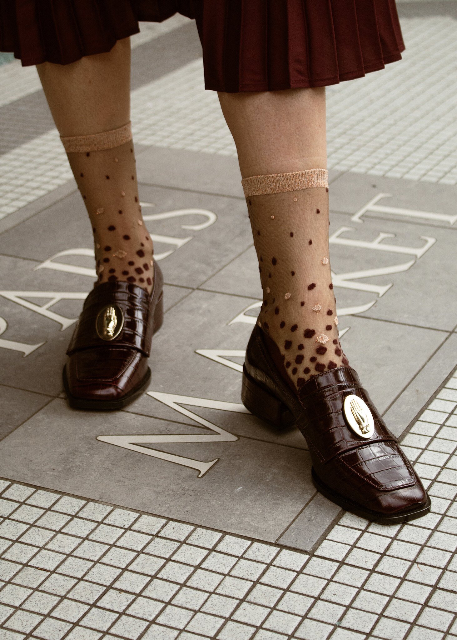 This time of year, I find myself drawn to texture: a delicate silk scarf against a wool coat and the charm of sheer patterned socks slipping into leather loafers. The colors deepen, the senses indulge, and everything feels just a bit more romantic.