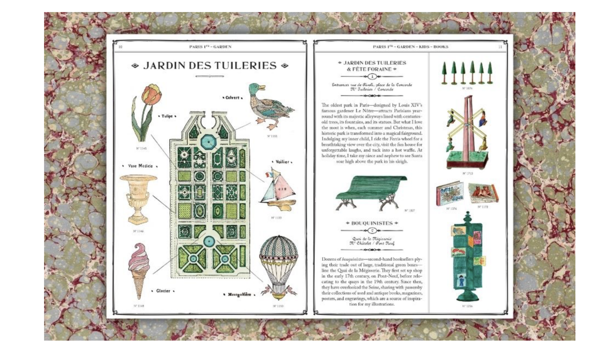 To discover every beguiling corner of Paris like a local, follow Marin Montagut to his favorite places; in operation for thirty years or more, these addresses define what makes the city so captivating. His adorable watercolors, accompanied by drawings from antique mercantile stock lists, bring each location to life. Reminiscent of a golden-age-of-travel guide, this book features gilt edging, foil stamping, a leatherette cover, marbled endpapers, a ribbon page marker, and maps.