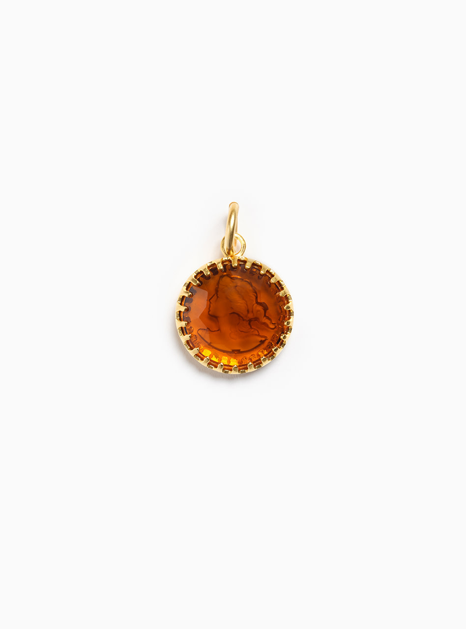 Charm- Cameo Round 18mm, Dark Amber