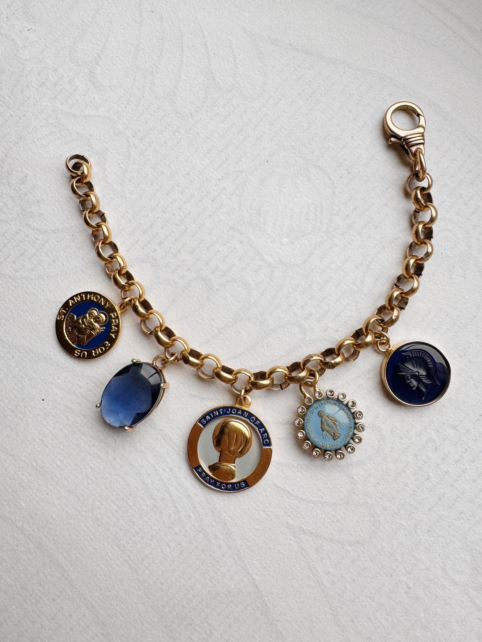 Cast from a vintage devotional token, this charm shows Saint Anthony cradling the Christ Child while holding a small book. Often invoked as the patron of lost things, his likeness was traditionally carried for guidance and recovery.