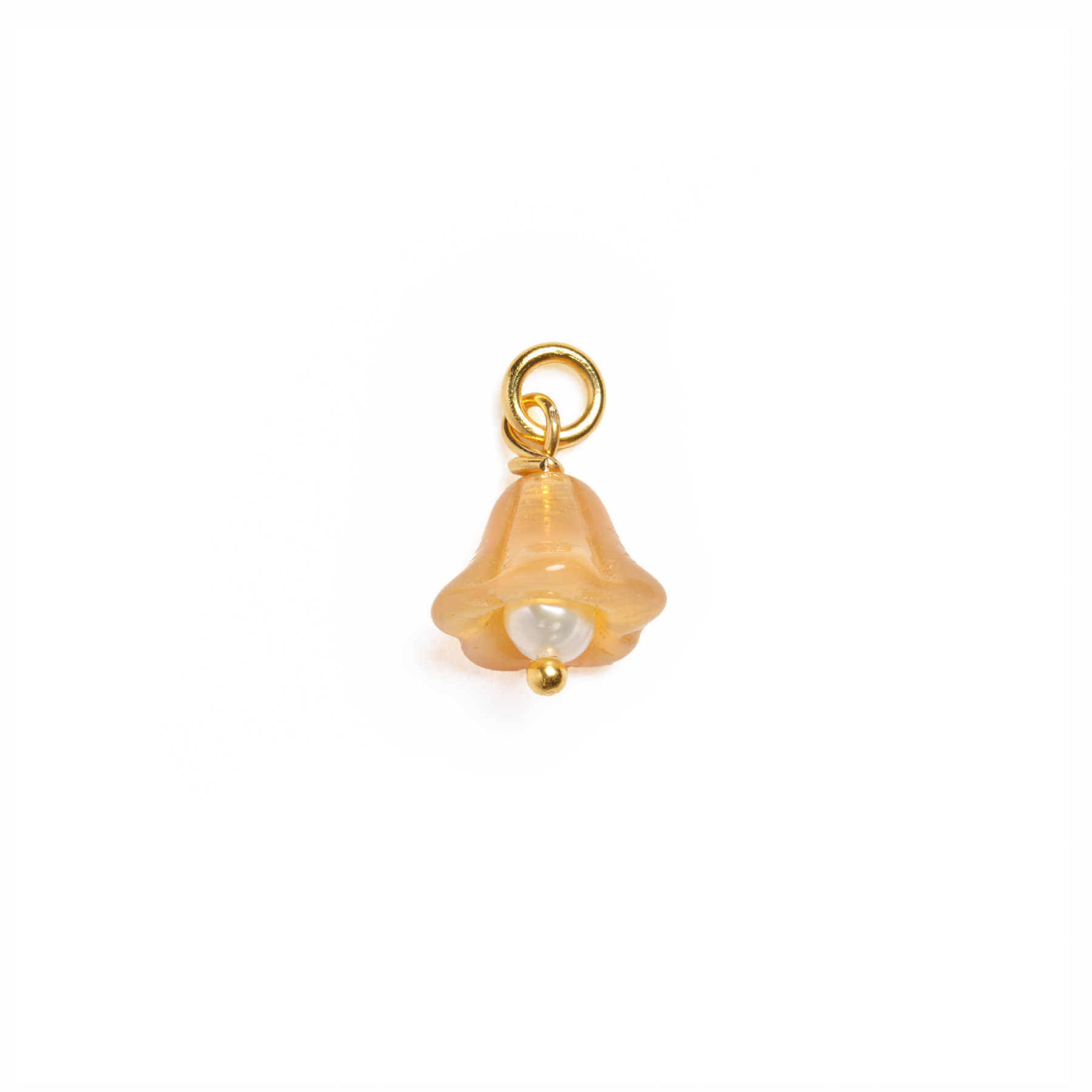 Delicate and subtle, this charm features a pale, translucent amber bellflower crafted from vintage German glass. Hidden beneath the bell, a petite pearl adds a hint of secret beauty.
