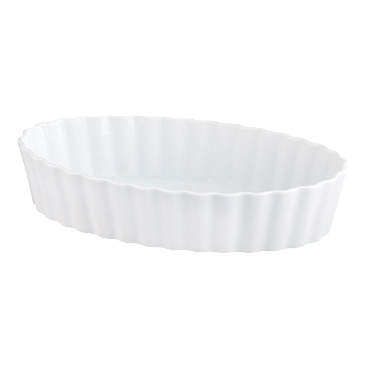 The traditional, scallop edged porcelain oval creme brulee dish features a shallow 1" depth to promote even, curdle free cooking of custard. Can be used as a panna cotta, creme caramel or flan, gratin, casserole or quiche dish.