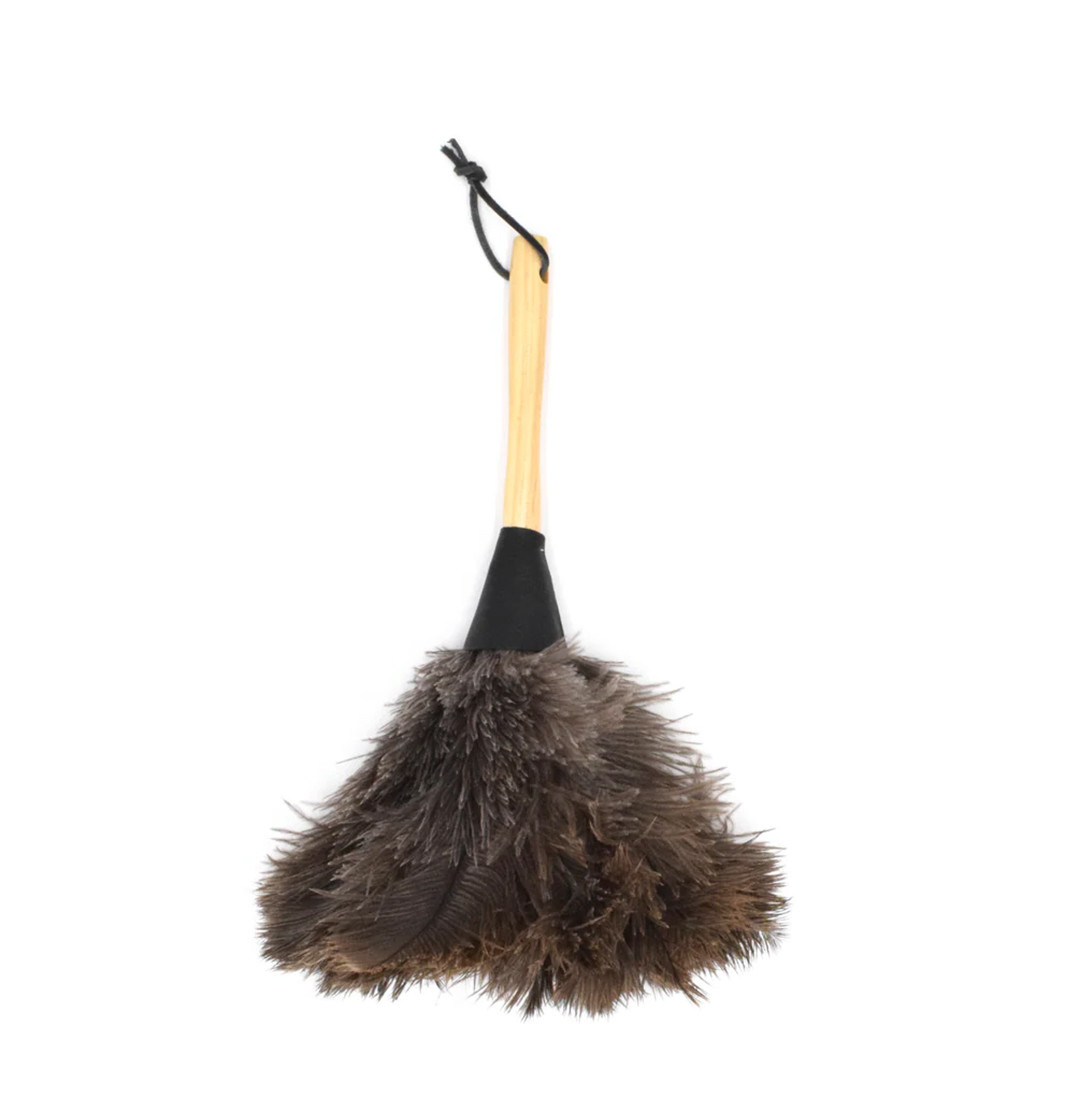 Create an accountMade from premium feathers, hand bound to a turned, blond wood handle and finished with black leather ferrule and leather hanging strap. Choose between Natural (Dark) in gorgeous shades of browns and gray, or Cream/White. Made in South Africa.
