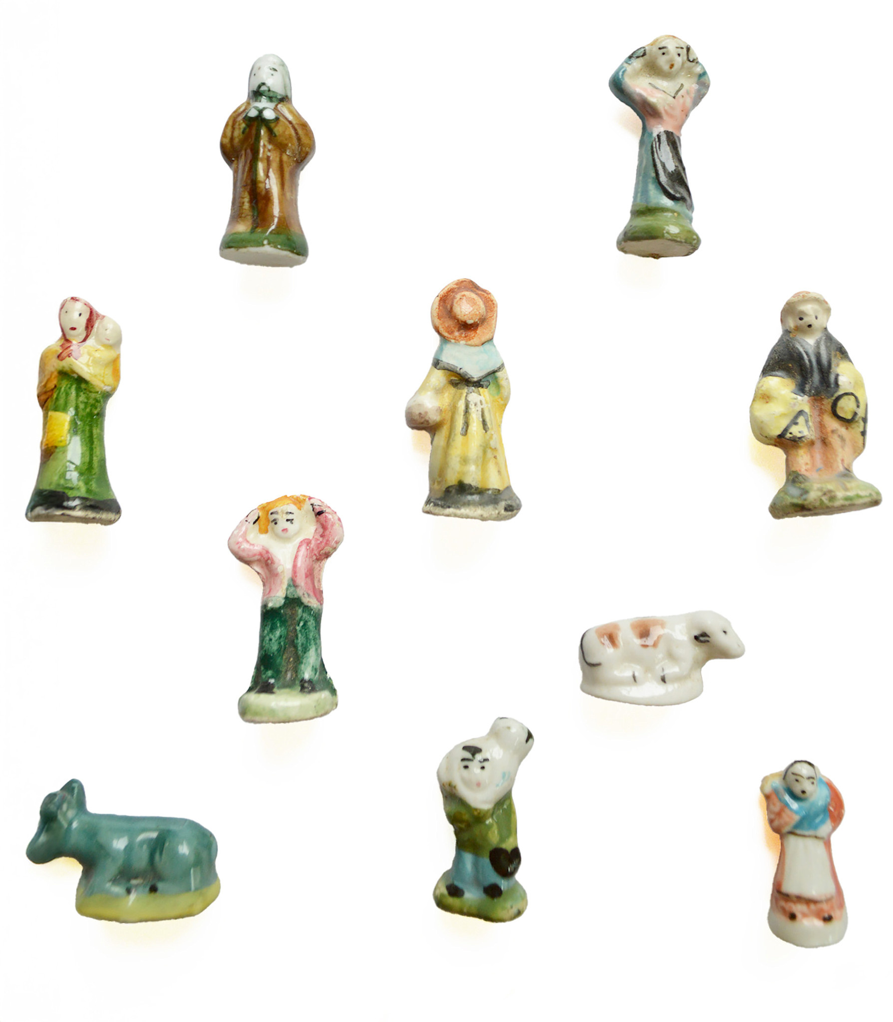 Celebrate French tradition with Galette des Rois Ceramic Figures. A charming assortment of miniatures for collecting, decorating, or gifting. This is a blind bag and we will send you a random assortment of Five Figures.