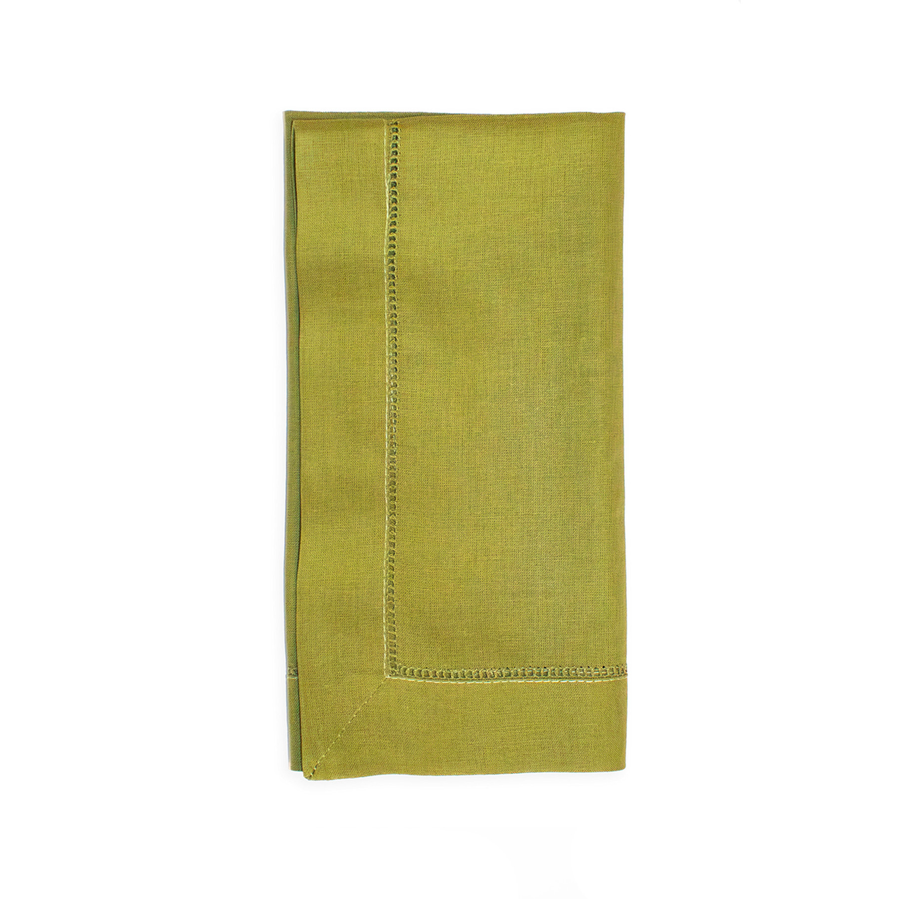 This hemstitched linen dinner napkin in a gorgeous green is the perfect accessory for a well-dressed table.