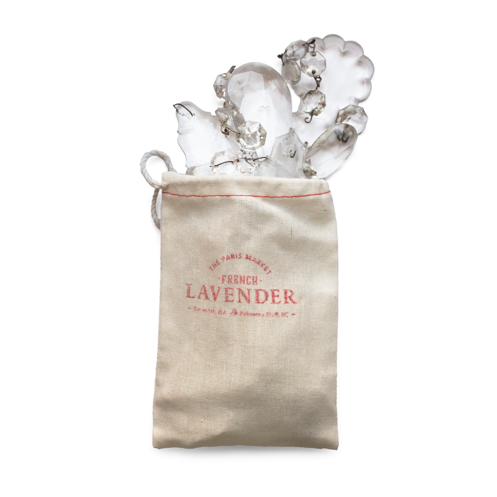 A sachet of crystals from 19th-century French chandeliers, each bundle a surprise handful. Nestled in lavender and paired with a story card, they carry a spark of light and magic to illuminate your life with history and wonder.