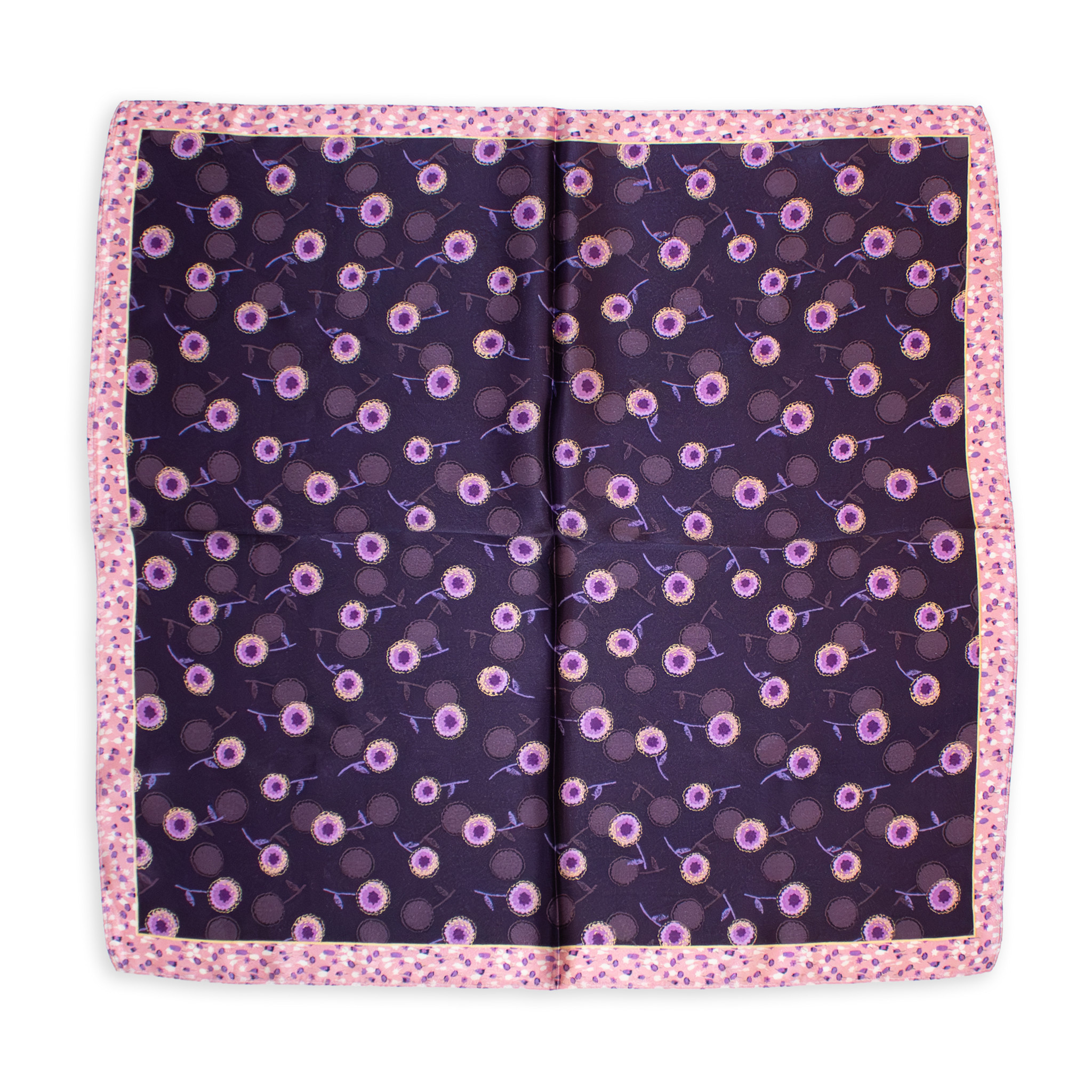 Grace your wardrobe with the Purple Dandelions Pink Border Scarf. Featuring delicate blooms and a soft pink trim, this lightweight scarf adds a romantic touch to any look. 50cm x 50cm