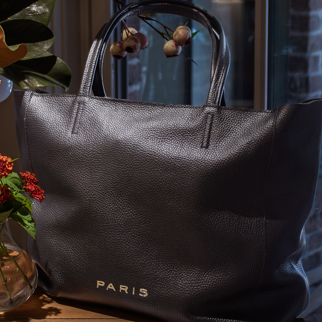 Make a bold statement with the Black Paris Rectangle Tote Bag. Designed for style and functionality, this timeless accessory is perfect for work, shopping, and travel. A must-have elegant addition to your collection.