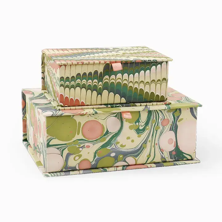 Keepsake Box- Hand Marbled Large Moss & Mountain