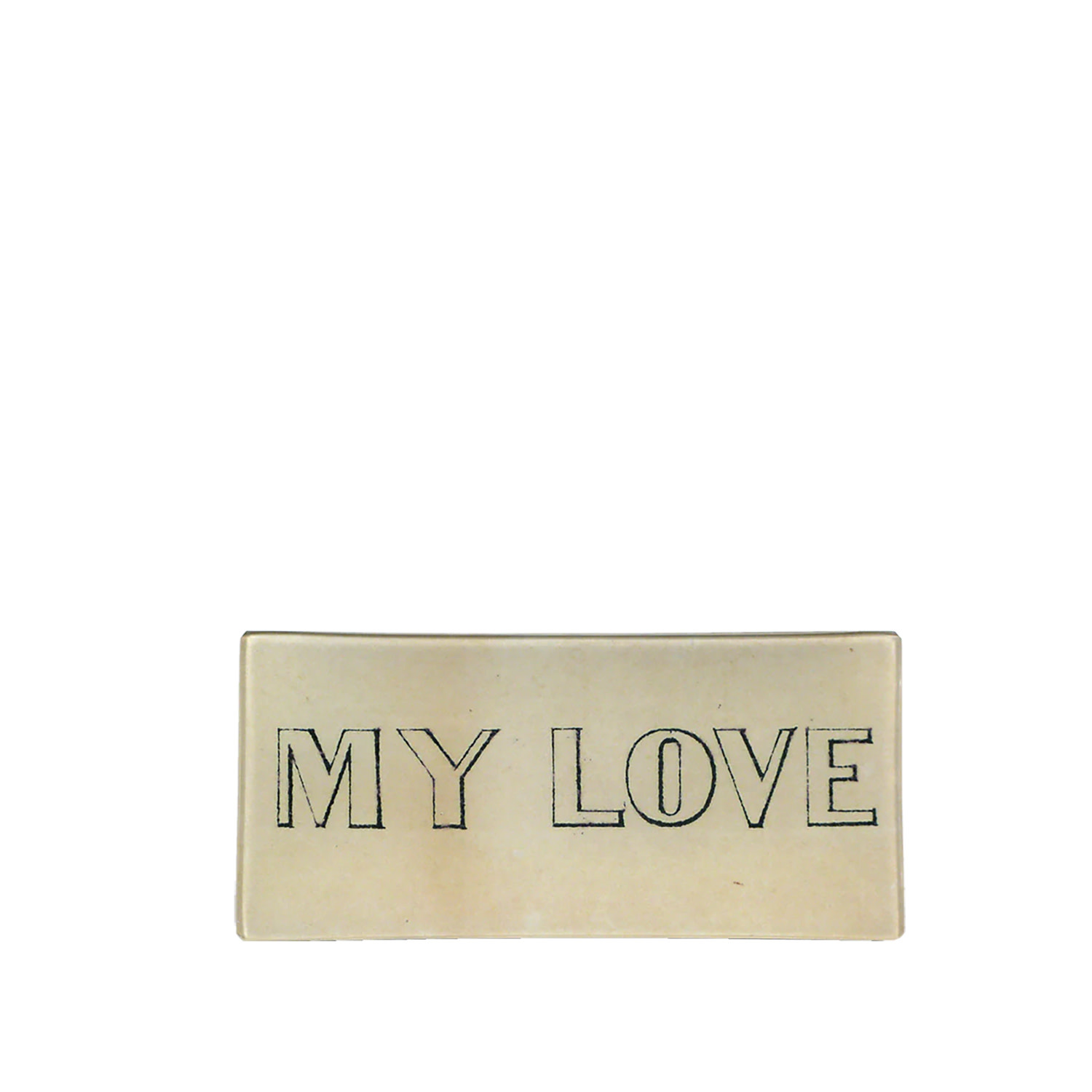 The My Love artwork by John Derian features a timeless romantic motif sealed beneath glass. Both sentimental and artful, it adds a poetic touch to walls, shelves, or desks and makes a meaningful gift for someone special.