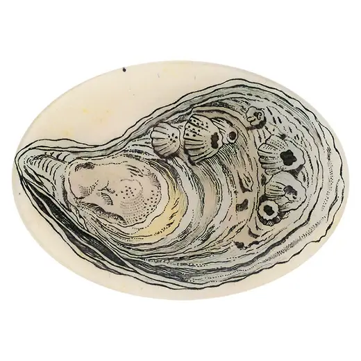 A study in simplicity and sea-worn beauty, this 7"x10" Oyster plate layers an antique print beneath hand-blown glass. Handmade in New York City, it captures the quiet poetry of the shore in timeless John Derian style.