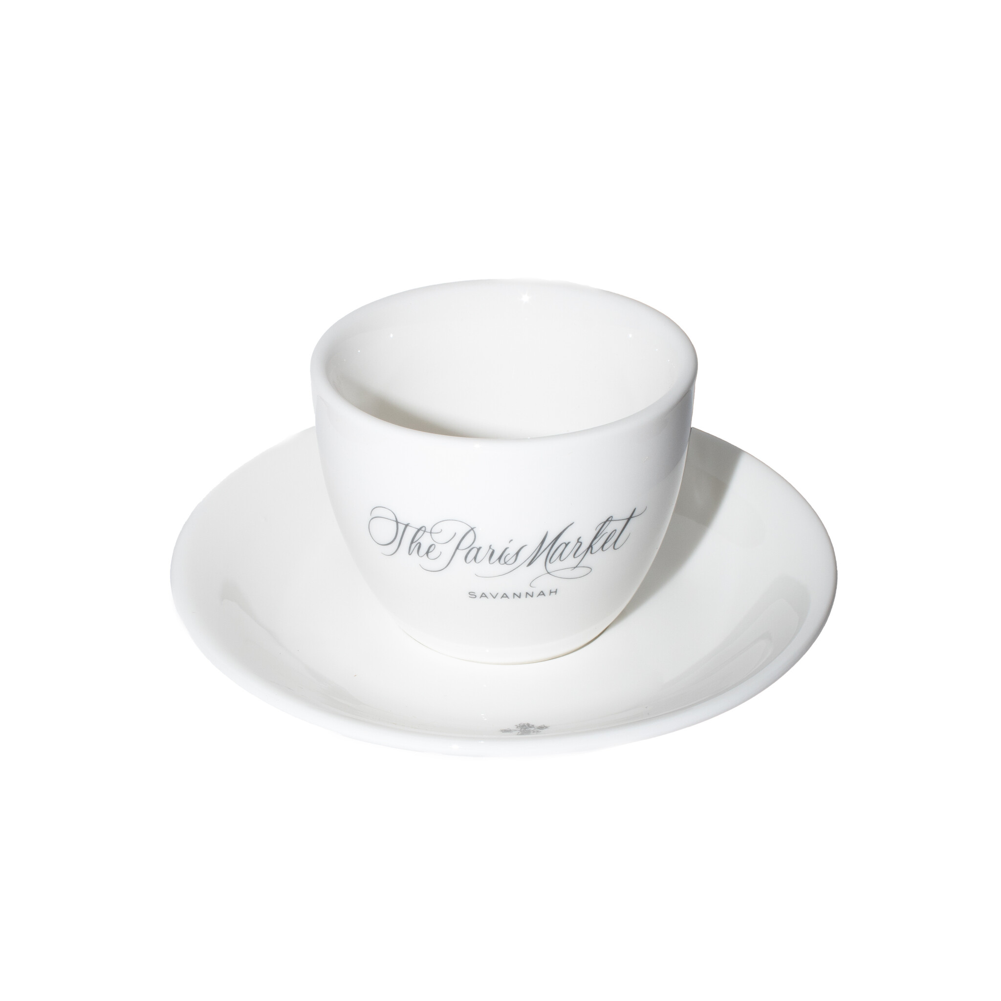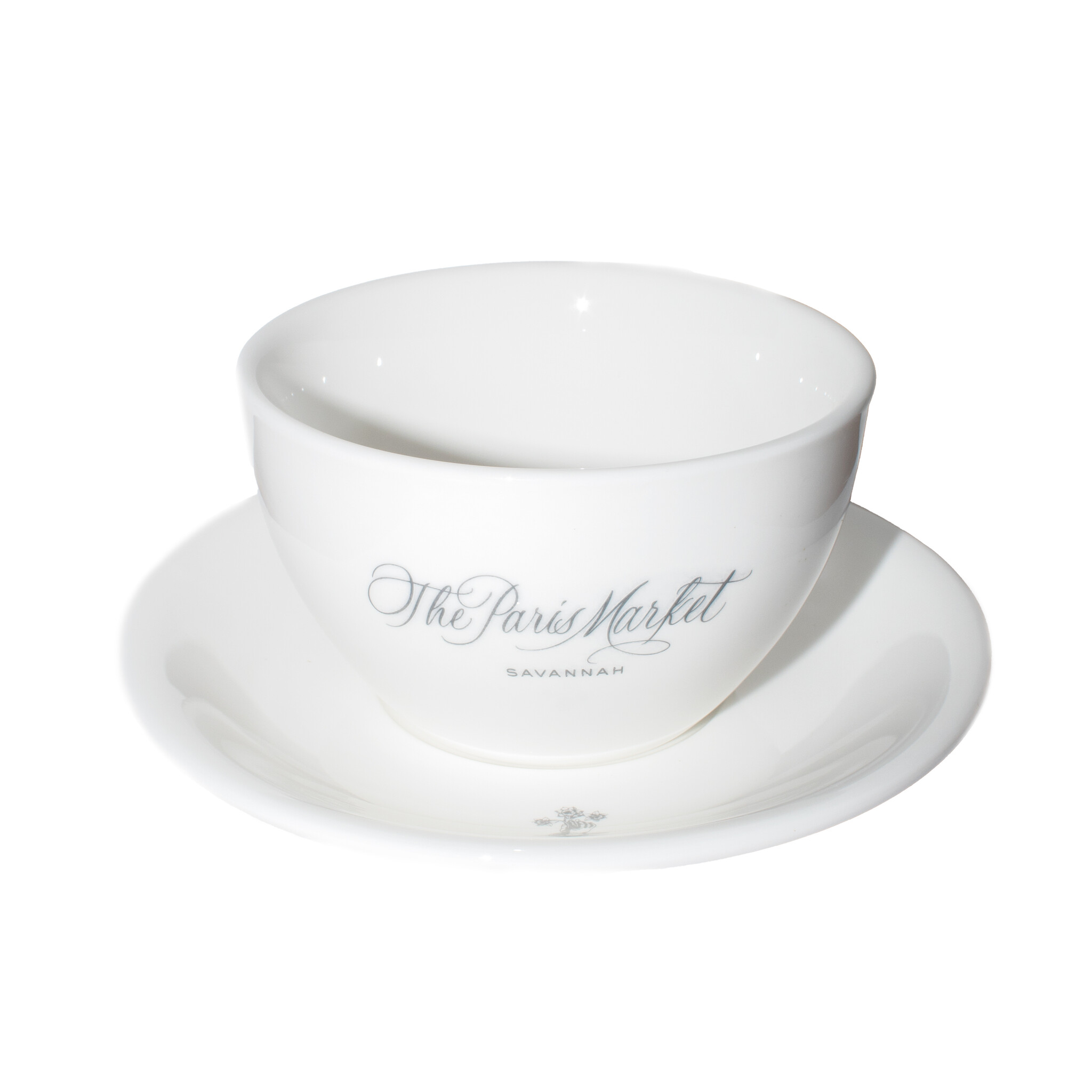 Our signature Paris Market cup and saucer, designed exclusively in-house to evoke the charm of a French café. Elegant curves, timeless script, and a perfect pour for your daily ritual.