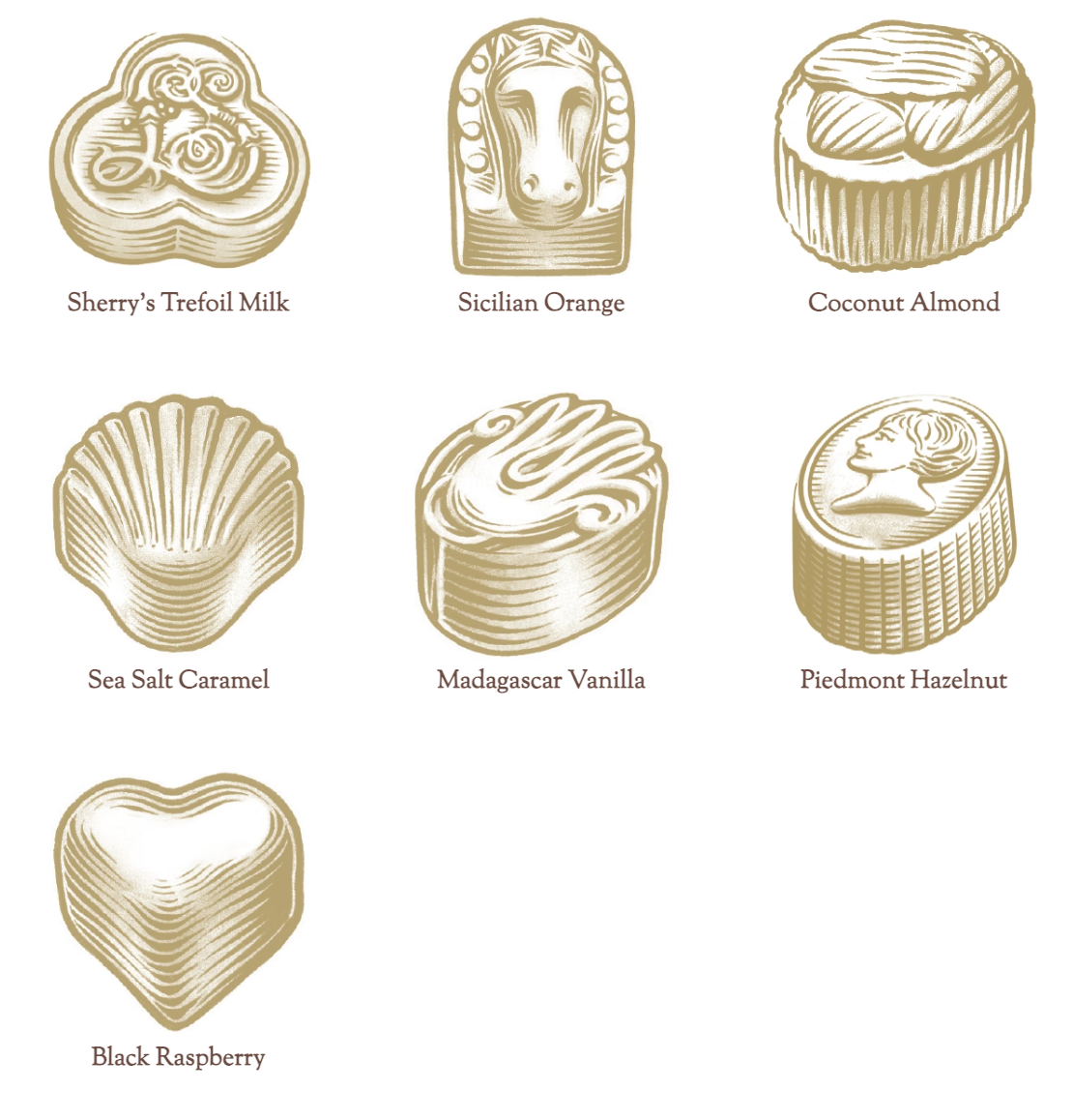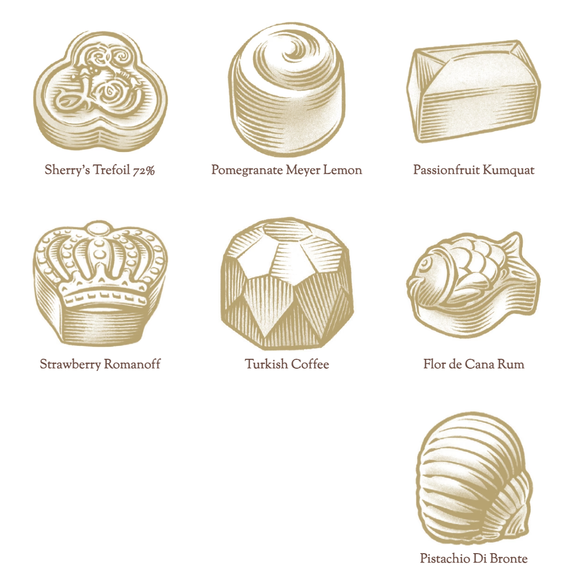 A 12-piece truffle tin created by Louis Sherry chocolatier, who was the first to craft American chocolate in the French tradition and present it as a luxury gift in a decorative tin. Peruse the original flavors and designs below.
