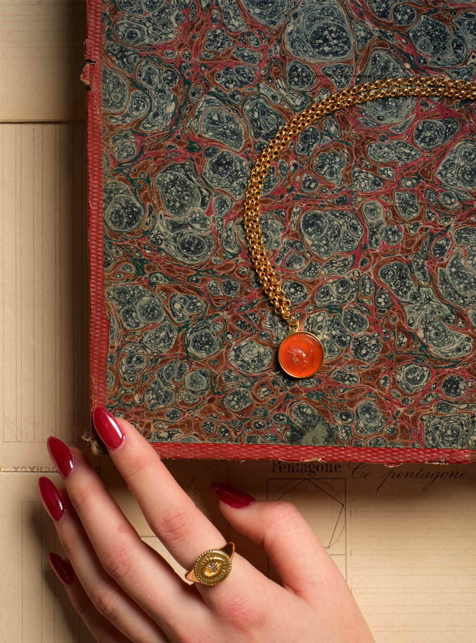 Bold as bronze and carved with the steadfast profile of a warrior, these cameo charms are cut with precision and care. It's a classic design, and a lovely addition to any piece.